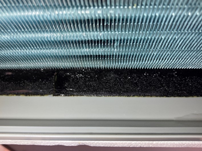 熱交換器背面の汚れも高圧洗浄にて洗い流します。本体上部に積もった埃払い等も丁寧に作業させていただいております。