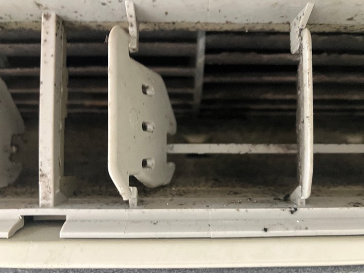 吹き出し口の汚れは圧力を調整しながら高圧洗浄いたします。洗浄剤を噴霧する工程を含めると3~4往復の洗浄となります。