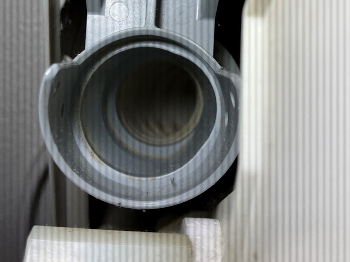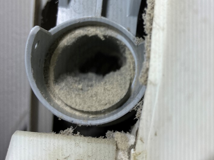 パナソニックのお掃除機能付きエアコン等、お掃除機能で出た埃を室外に排出するタイプの場合は排気口や排気ホースに埃が詰まってしまう事がございます。