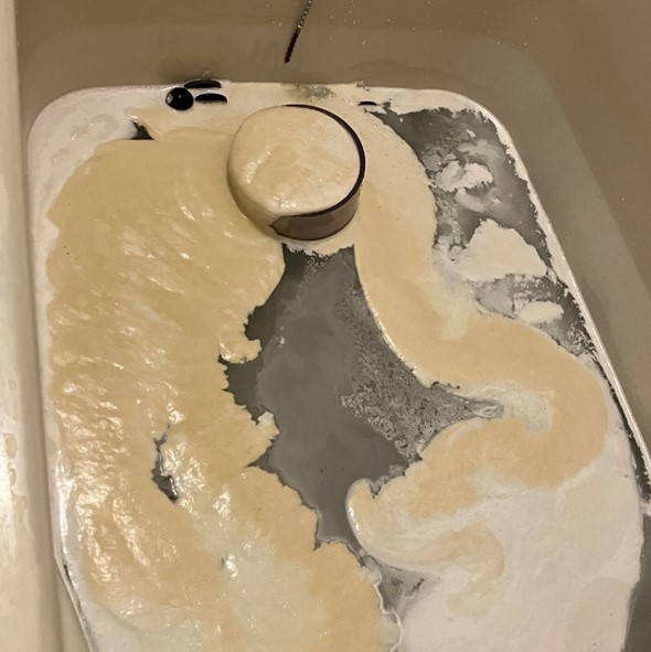 約10分間の追い焚きで配管内を循環した洗浄剤の化学反応によって発砲と同時に汚れが排出されます。