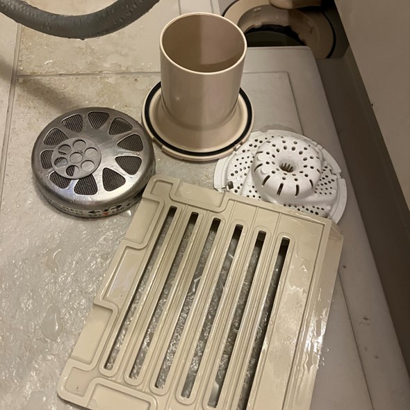 濯ぎ工程の際に、排水トラップ等の排水口部品をサービスで簡易清掃させていただいております。