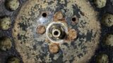 パナソニック日立の洗濯機は、4本のボルトで固定されている東芝やシャープの洗濯機と違い、1本の太い軸に洗濯槽がハマっていて、この軸に固定金具が付いています。